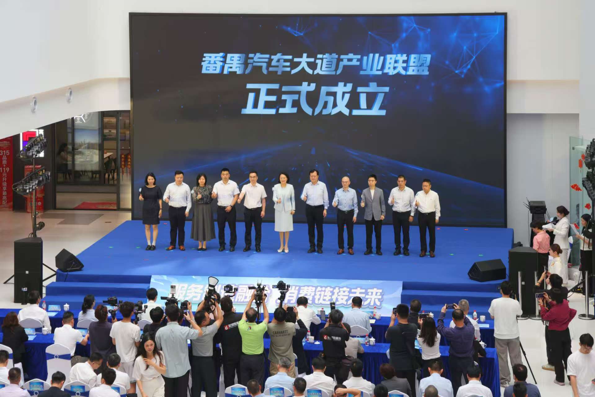 同时,由南村镇、大石街、东环街、市桥街、大龙街、桥南街六镇街共同组建的番禺大道汽车产业联盟正式成立。该联盟以“开放共享、协同赋能、共促发展”为宗旨,将推动番禺汽车消费产业高质量发展,进一步擦亮“买汽车,到番禺大道”的金字招牌。